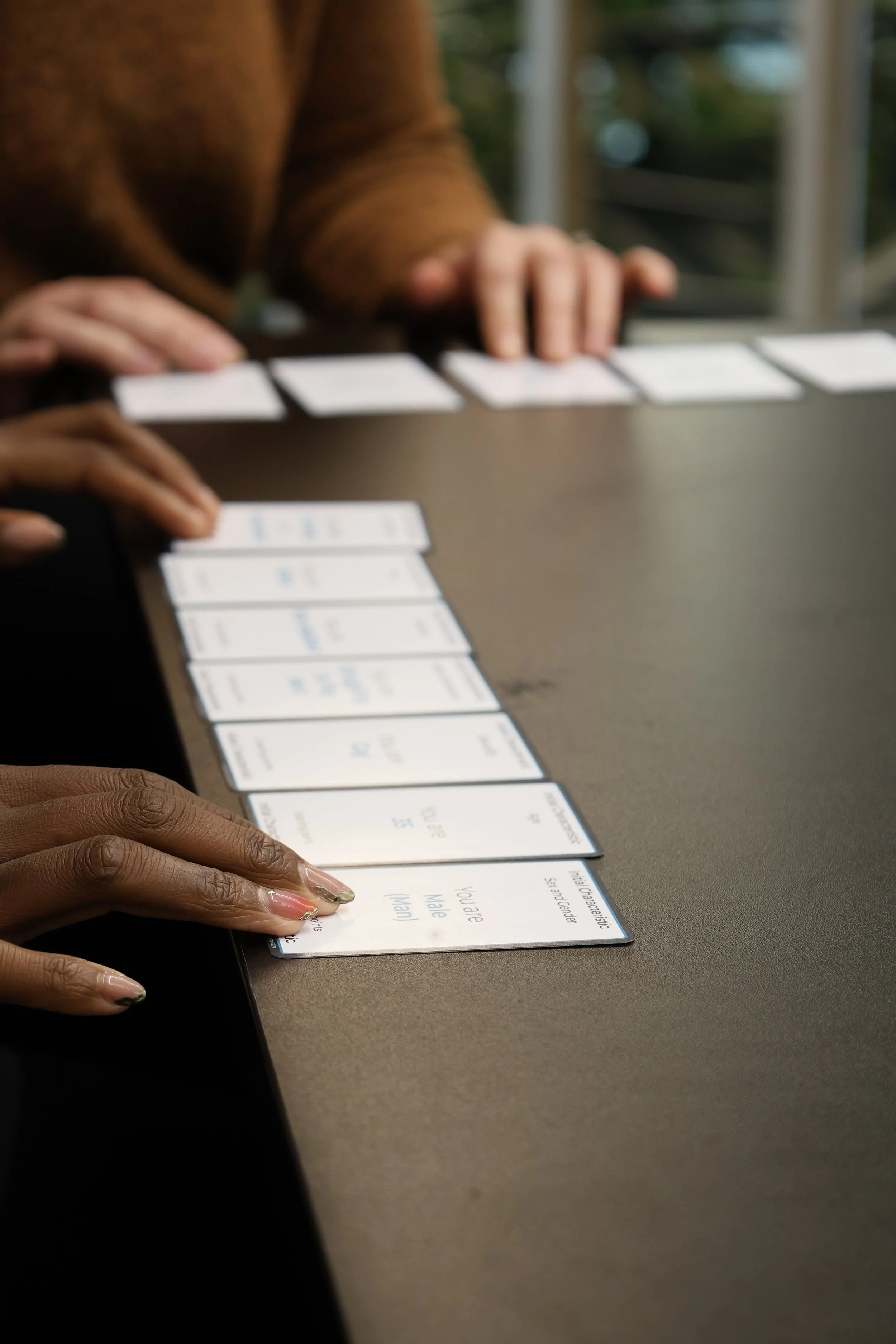 Create a tailored deck: We’re happy to discuss creating a bespoke card deck, such as by tailoring the cards to your specific context or personalising them with your organisation’s branding.